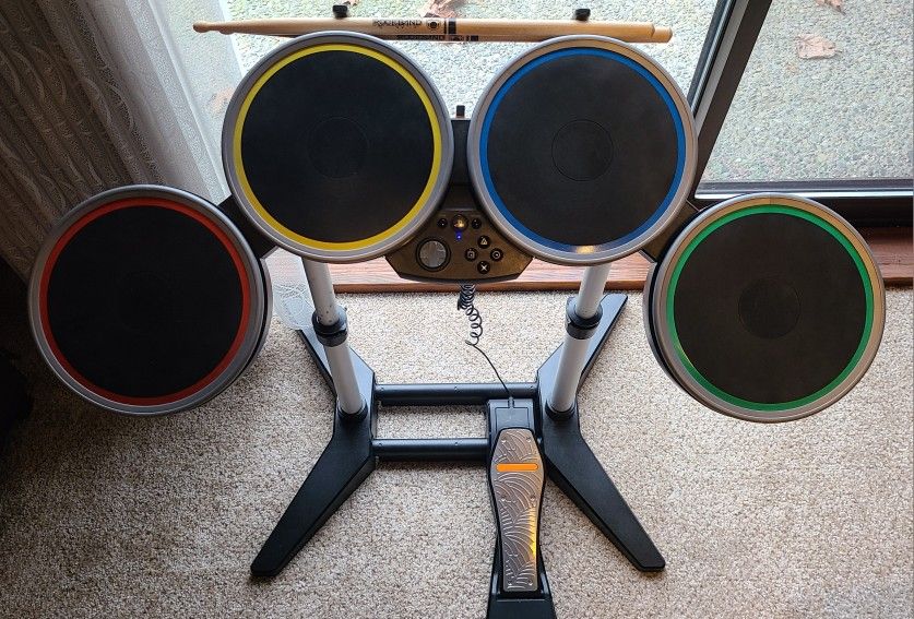 Selling drumset for Rockband 4 PS4. Recently upgraded to an electronic drumset with an adapter. They don't make these anymore so they are hard to find! Everything tested and works great. Comes with original drum sticks and pedals, and original box. Pairs wirelessly with the console. Works for both PS4 and PS5. Listing is for drums only (no game). Cash or venmo preferred. Smoke free home.