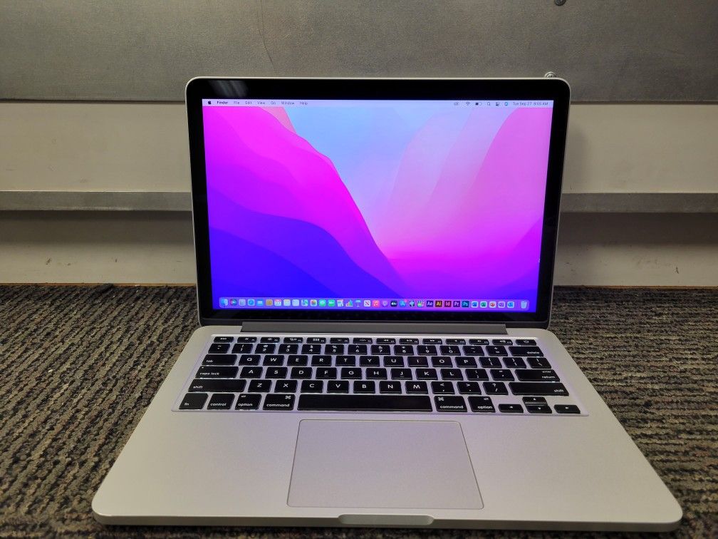 Manufacture Year: 2015 Operating System: Monterey OS 2022 12.2.1 with Microsoft Office, Adobe Programs (AfterEffects, Illustrator. Photoshop, Premier Pro, Indesign) , Final Cut Pro, Logic Pro Specs: Intel Core i5 2.70 GHz 16 GB RAM 256GB SSD 13" Retina screen Wireless wifi Web cam Bluetooth SD card reader HDMI output Good battery Comes with charger