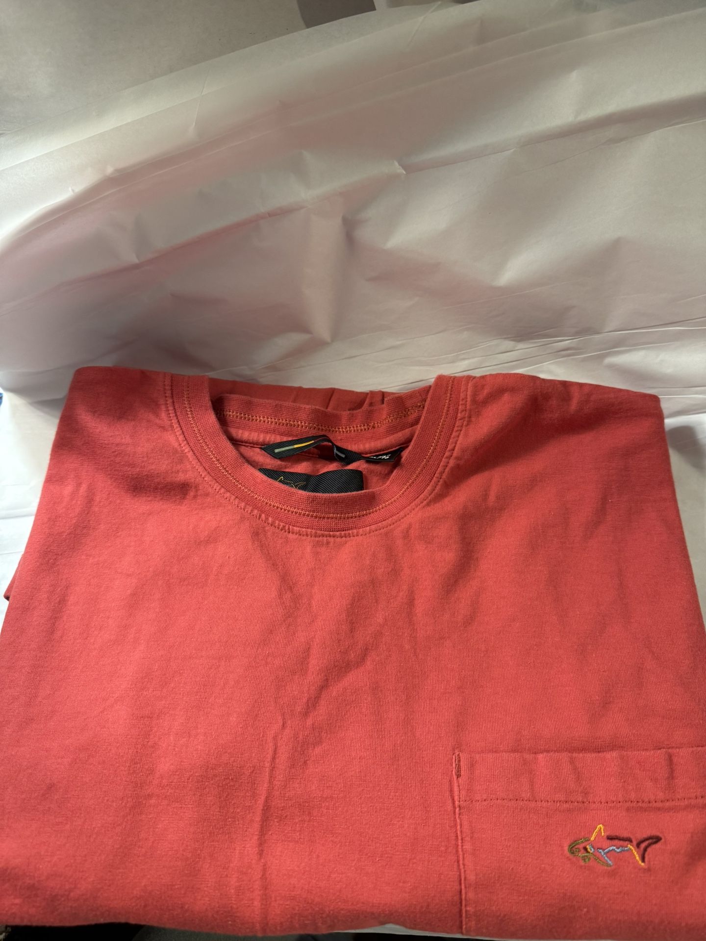 Men’s Greg Norman Shark Pocket short sleeve T shirt PINK SALMON Size XL