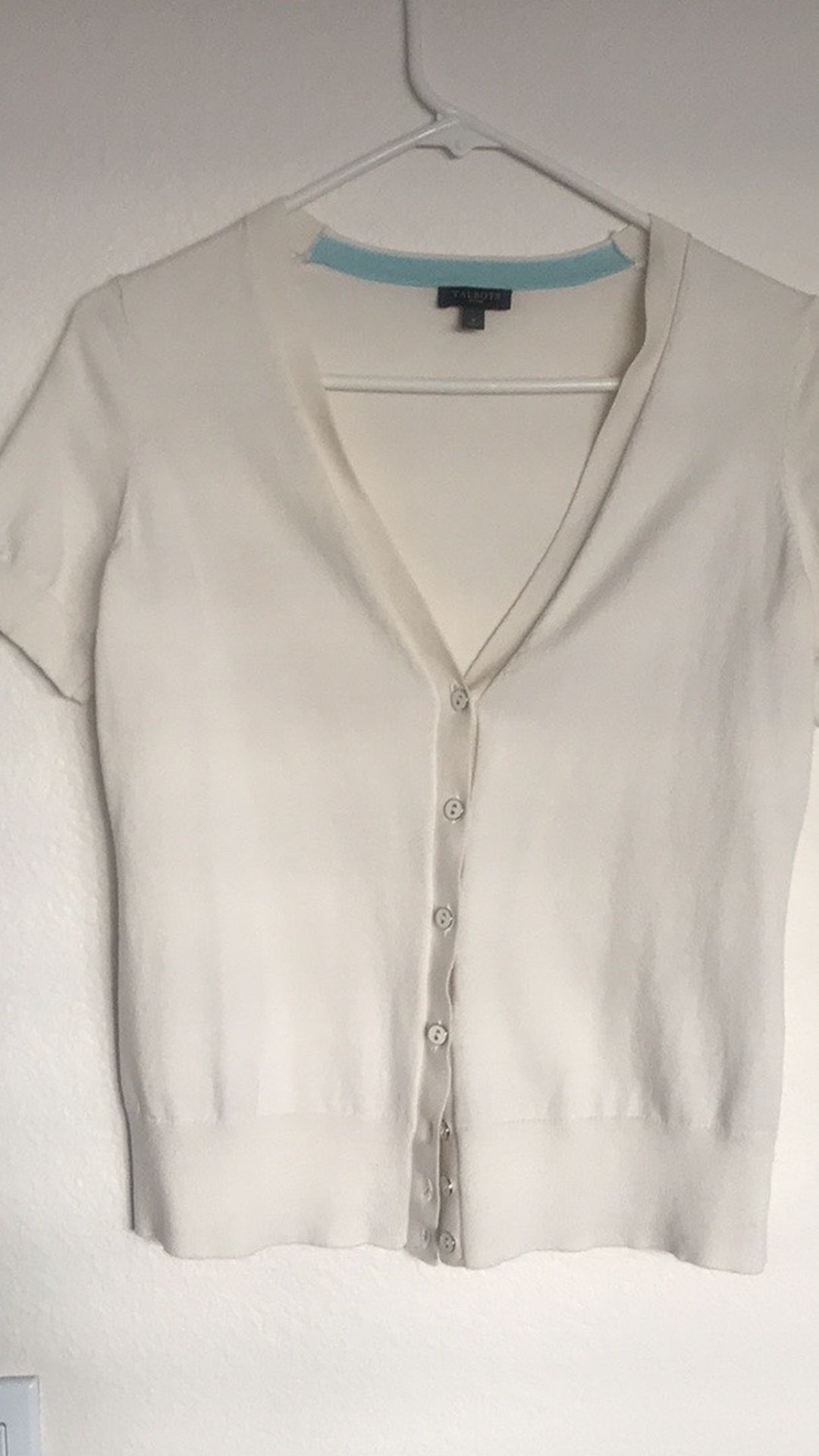 Talbots short sleeve sweater cardigan P pre loved, color in off white cream, in great condition, never wear