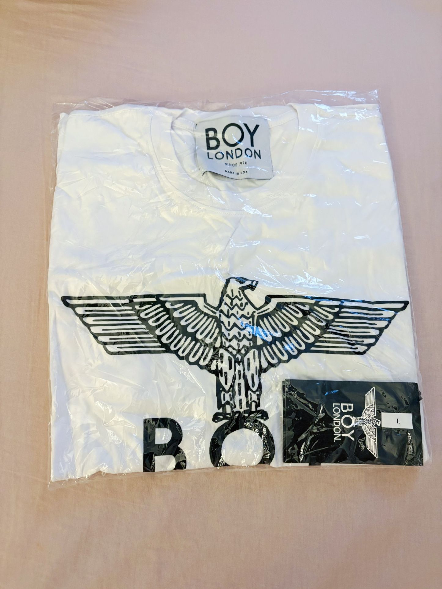 Brand new with original packaging, size L. Classic Boy London style shirt. Good gift! #BoyLondon #fashiontshirt #white #eagle