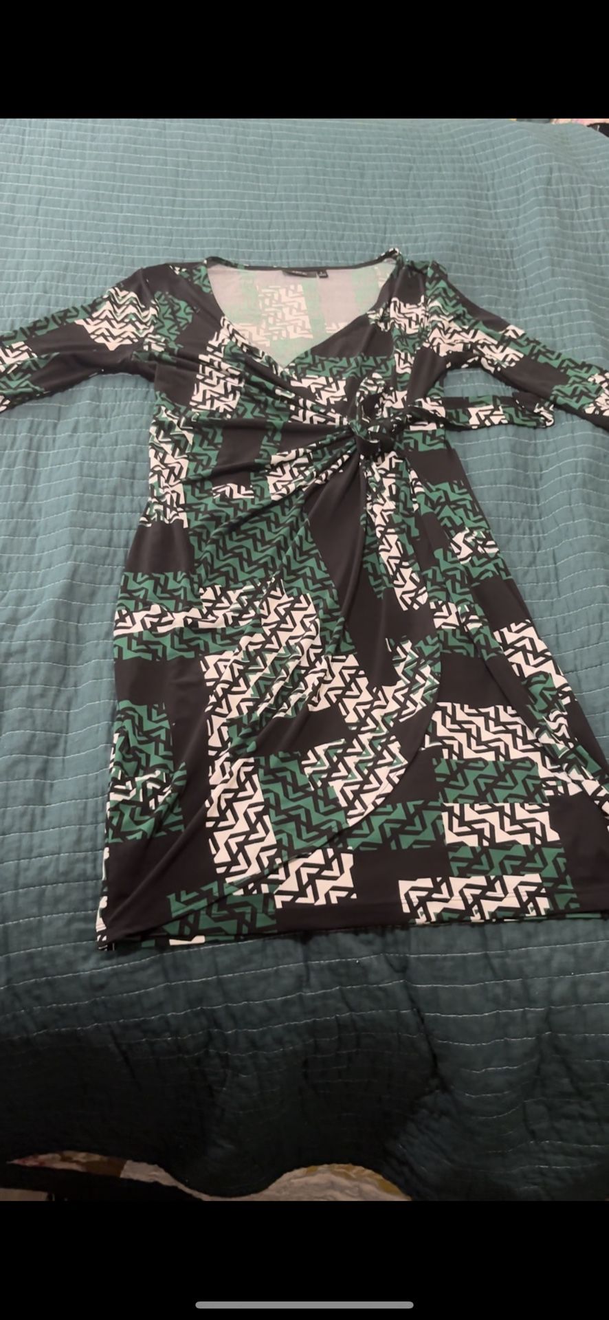 Apt 9 Womens Dress size S Green Wrap Style 3/4 Sleeve Slinky Travel Knit Stretch
