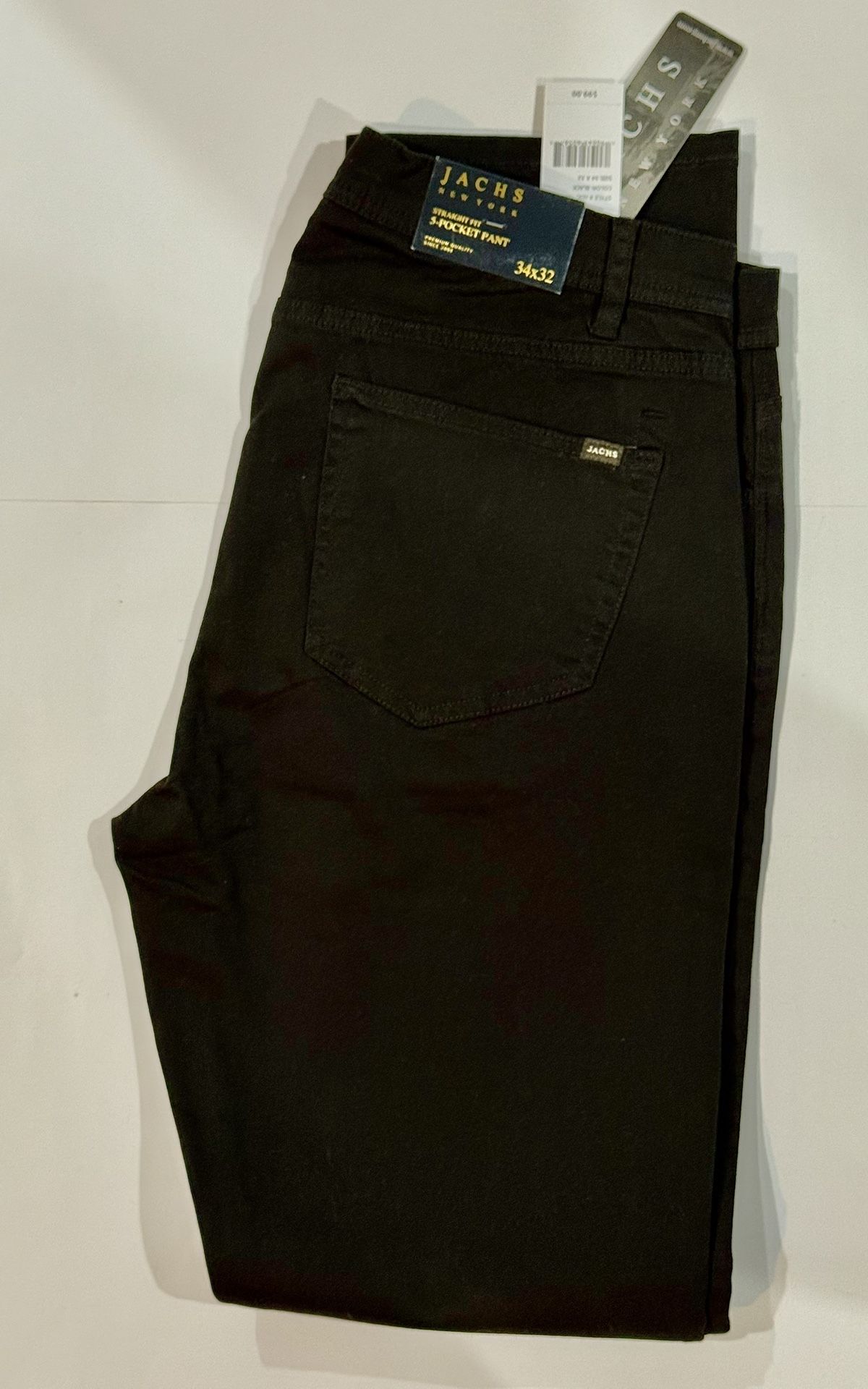 JACHS New York Straight Fit 5-Pocket Pants – Men’s 34×32 – Black (NWT) Brand new with tags JACHS New York straight-fit 5-pocket pants in classic black. These pants offer a clean, modern look with the versatility of a jean-style pocket design, making them perfect for work, travel, or everyday wear. Details: • Brand: JACHS New York • Style: Straight Fit, 5-Pocket Pant • Size: 34×32 • Color: Black • Condition: New with tags • Premium cotton fabric • Belt loops and zip fly • Retail price: $99.00