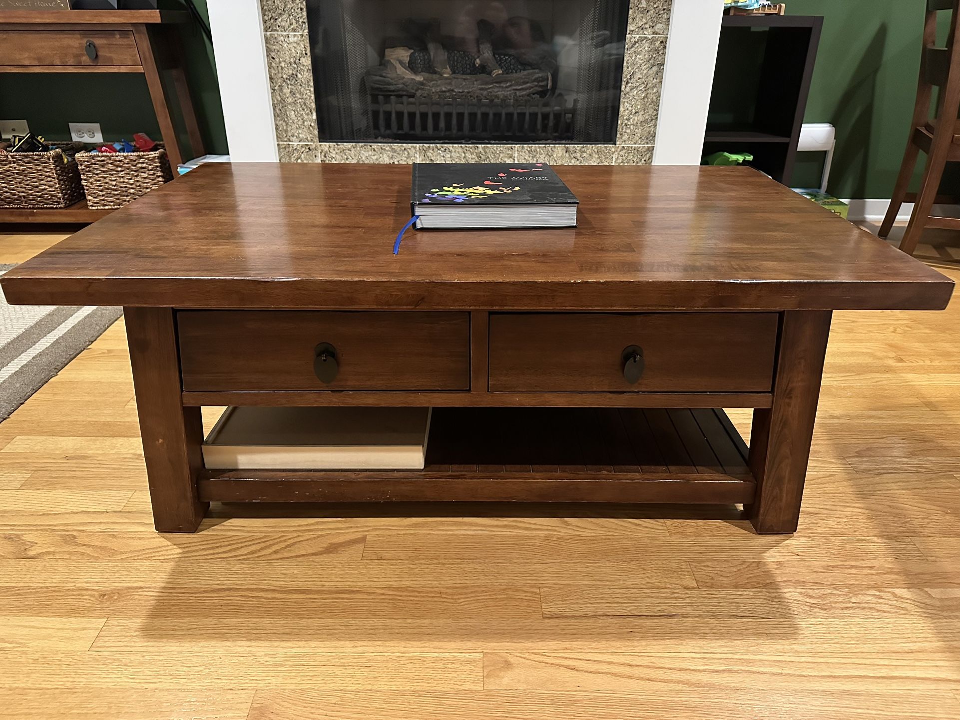 Pricing: Asking $700 for the complete set if purchased all together. Prices if purchased individually are as follows: Dining Table Set (Table + 4 Chairs): $350 Coffee Table: $225 Side Table: $125 Entry Table: $150 Selling a high-quality, solid wood furniture set from a World Market collection. All pieces are in excellent, well-maintained condition with normal wear and tear. The solid wood construction ensures they are built to last. The set includes: 1. Dining Table: Measurements: 31" Tall x 72" (6ft) Long x 40" Wide. Has a convenient built-in drawer, perfect for storing placemats or silverware. Solid wood construction with thick, square legs. 2. Dining Chairs (Set of 4): Measurements: Seat is 18" tall. The chair back is 41" tall. Seats are 17.5" deep x 18.5" wide. The chairs have a stylish back with horizontal slats. 3. Coffee Table: Measurements: 48" long x 29.5" wide x 18" tall. Features two built-in drawers and a full-length bottom shelf for extra storage. 4. Side Table: Measurements: 22" wide x 24" long x 22.5" tall. Has a single built-in drawer and a full-length bottom shelf. 5. Entry Table: Measurements: 36" wide x 12" deep x 30" tall. Has a single built-in drawer and a full-length bottom shelf. Ready for a new home!