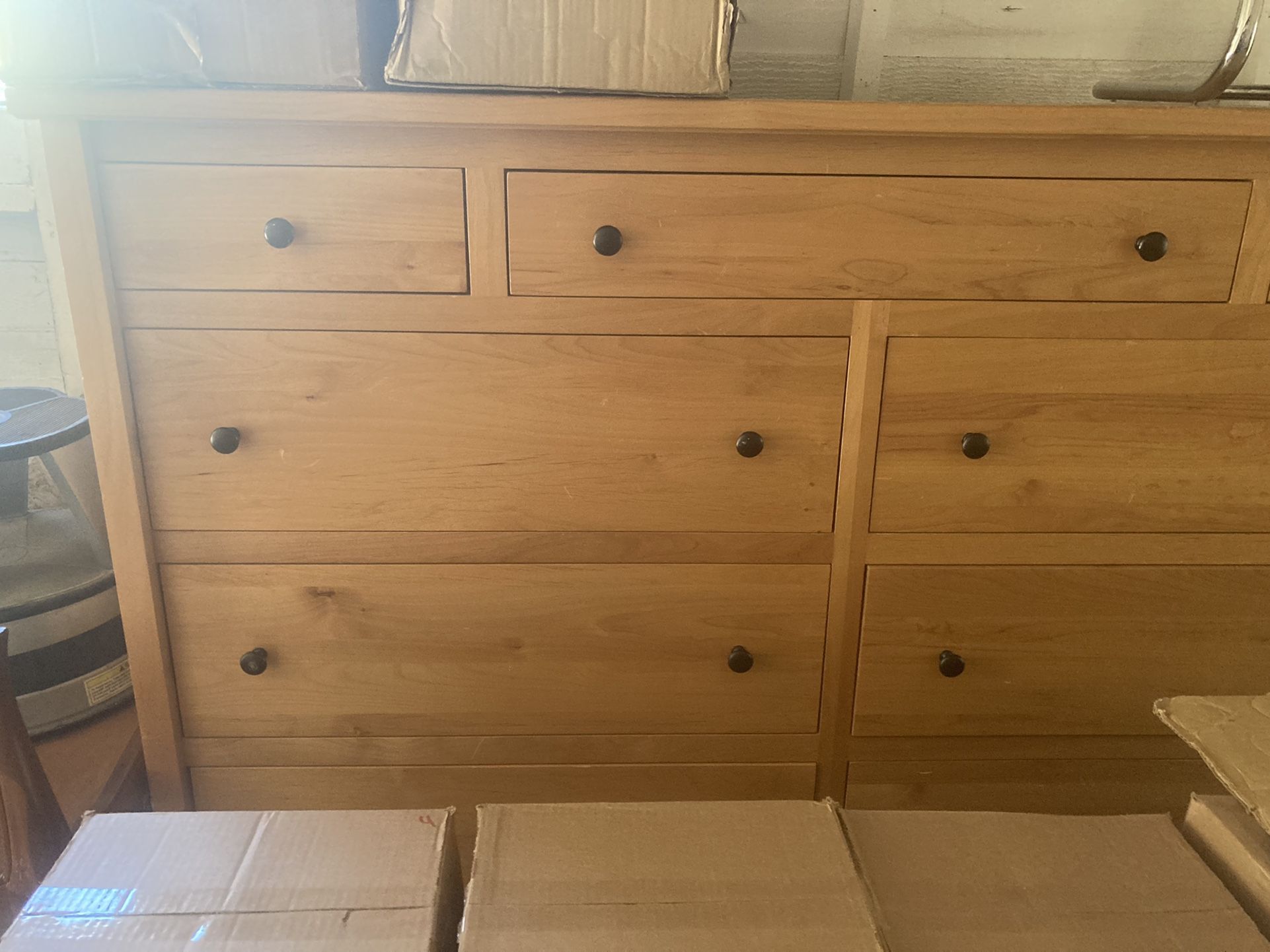 This dresser is large and extremely well made by American WoodCraft Label on the back which is difficult for me to access for photos since it’s tucked away in the garage. Dimensions are as follows: -64 inches long -50 inches tall -17.5 inches deep Drawers are very clean on the inside. Exterior has scratches all over. Solid wood makes for easy refinish or use as is. Will deliver for 150$ payable by Zelle prior to delivery. Do not message me if you can’t pickup or pay today. I’ll accept payment through Zelle and hold for you if you can’t pickup today