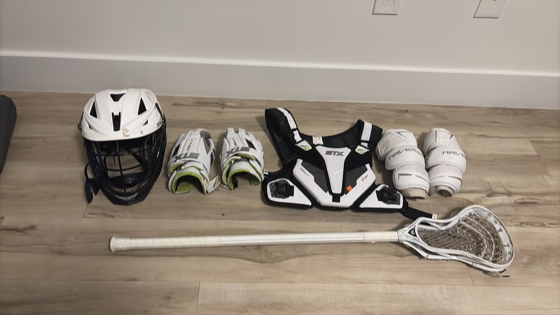 Cascade xrs pro helmet Stx cell 6 gloves and chest pads Maverick m6 elbow pads Ecd stick rebel offense head with cf5 shaft Barely used for half a season