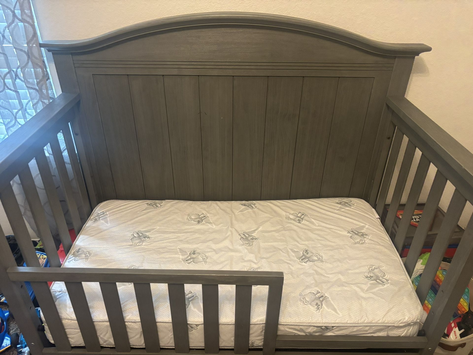 Toddler bed + changing table set for sale • Bed converts to an infant crib • Includes toddler mattress • Excellent condition • Sturdy and clean • Great for nursery or toddler room Ready for pickup and priced to sell!