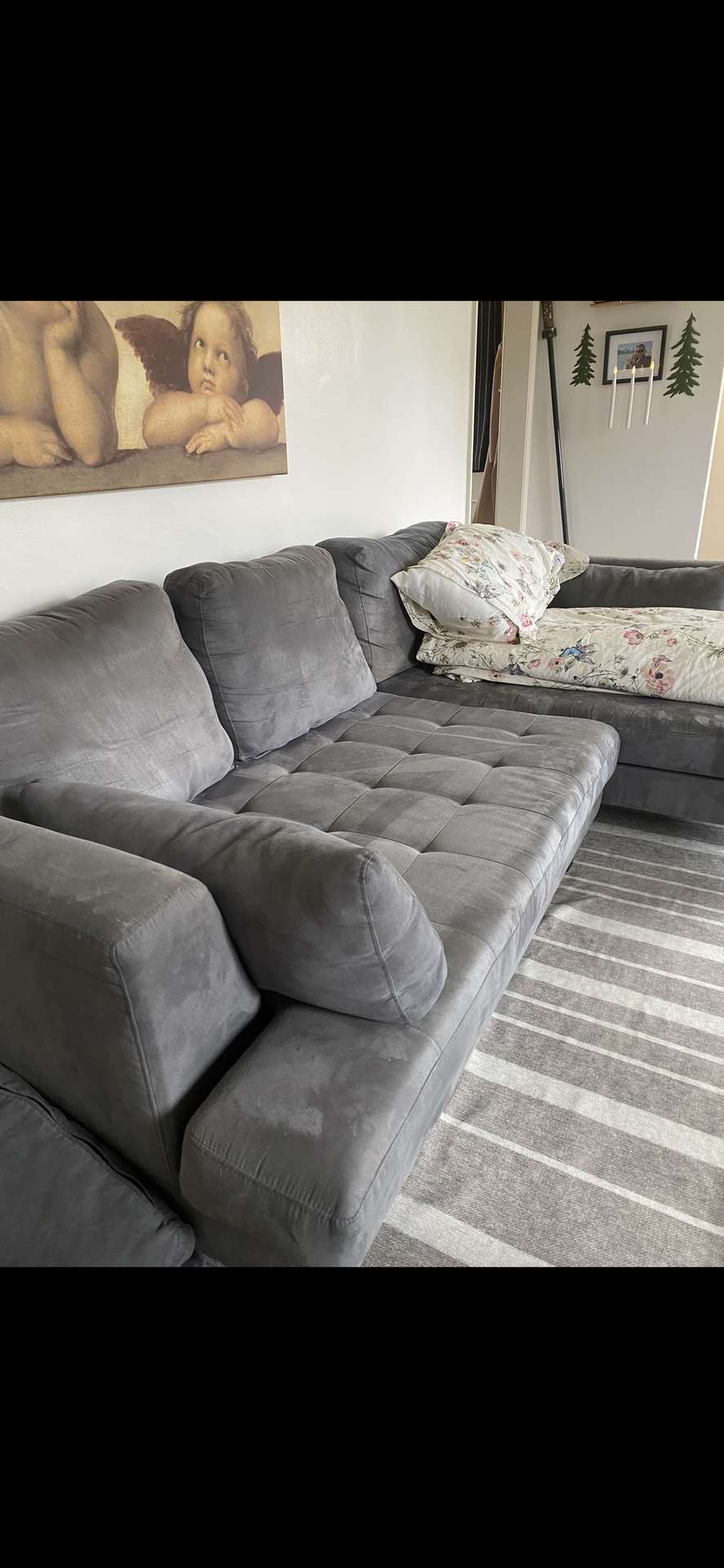 Smallest burn hold side Pets have been on it 2k couch bought for 1k Comfy