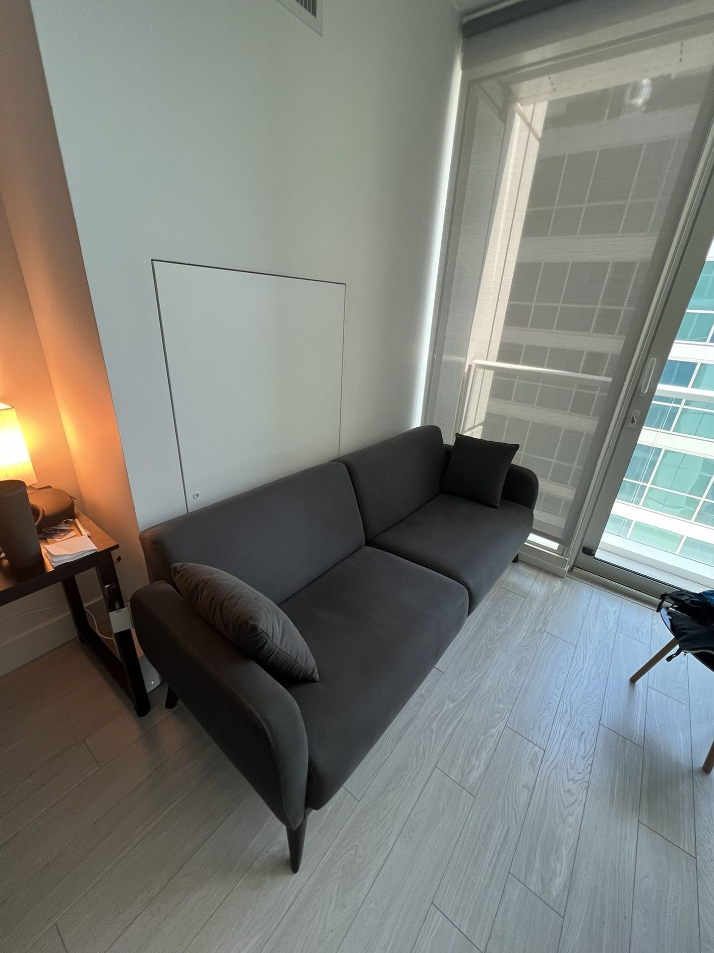 Premium Futon/Sofa from Wayfair! Current retail price for this couch is 640$ and I’m letting mine go for a significant discount since I’m trying to change up the furniture color in my home. Price negotiable. Features - Converts to a bed - Rock solid construction and stain resistant - Has storage space under both seats - Two throw pillows Dimensions - 78.8 inches wide - 30.25 inches tall - 22.5 inches deep Look at listing here: https://offerup.com/redirect/?o=aHR0cHM6Ly93d3cud2F5ZmFpci5jb20vZnVybml0dXJlL3BkcC9icmF5ZGVuLXN0dWRpby1zb2ZhLWluLWEtYm94LTc4OC13aWRlLXJvdW5kLWFybS1zbGVlcGVyLXcwMDI2MDA3ODYuaHRtbA==