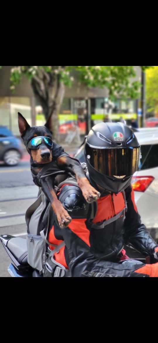 Great condition Features a removable lap belt with hip pockets and a waste bag dispenser. Internal frame with inner padding keeps your buddy safe and secure. Plenty of storage options to stash your gear. Side-vent zippers help keep your canine cool on the road. Detachable sun and rain hood helps protect your pup from the elements.