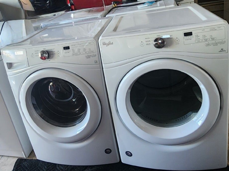 Nice and clean whirlpool front load washer and gas dryer heavy duty super capacity both working great clean in n out energy star matching set both in great conditions Hablo español