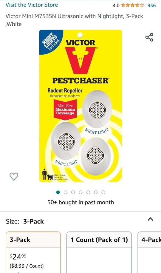 Victor Pest Chaser Rodent Repeller 3 For $5