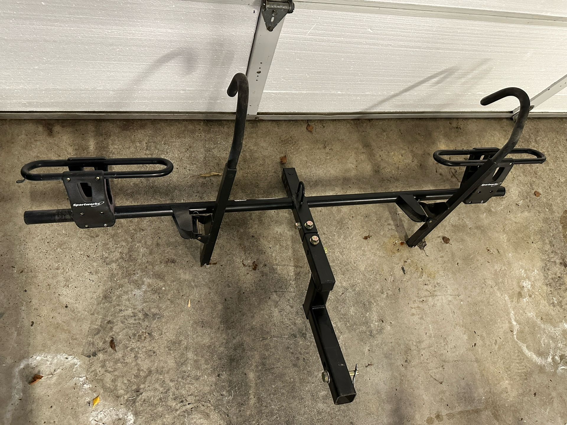 Single bike rack is adjustable. Fits 2” tow hitch.