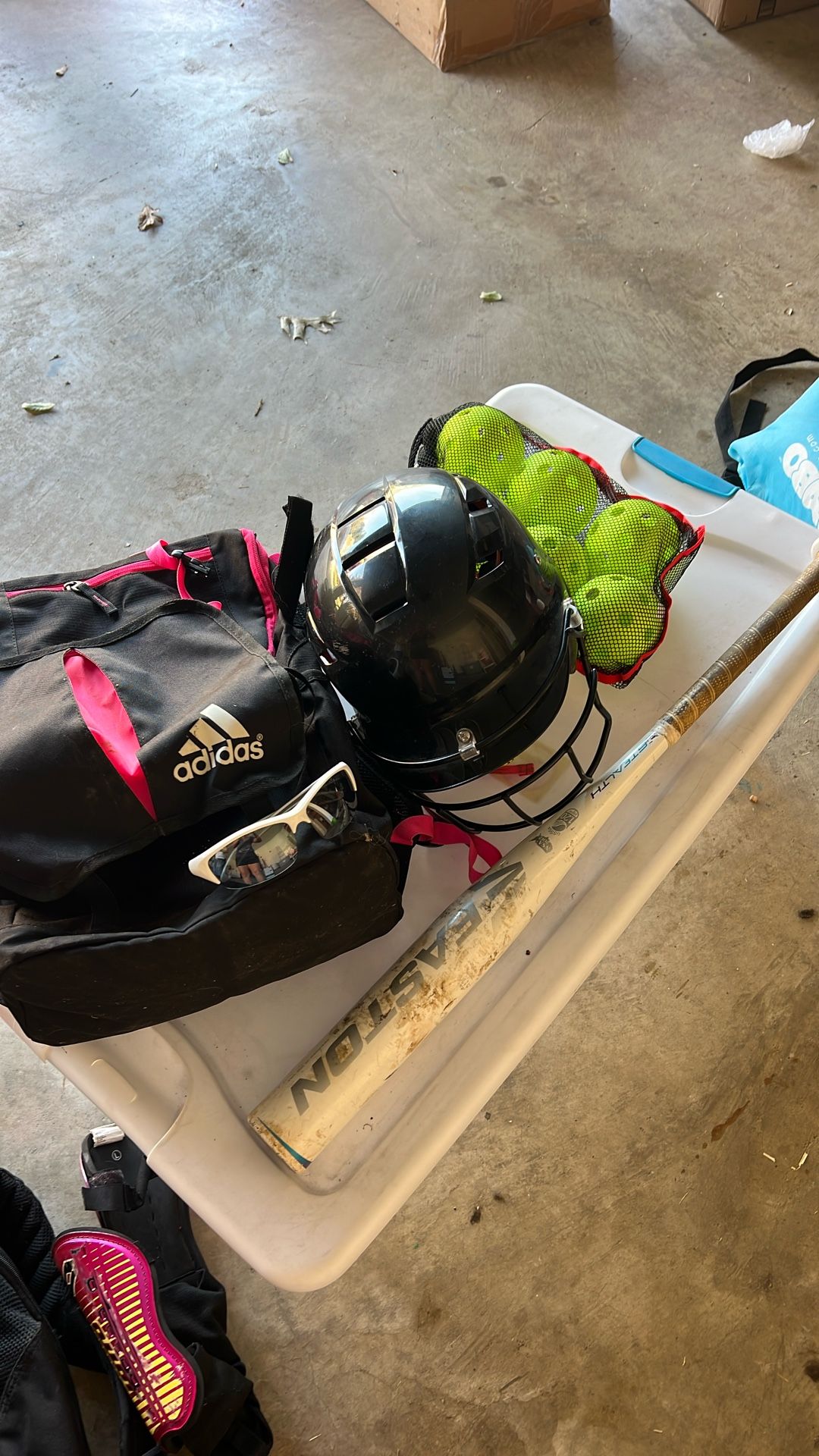 Easton bat Schutt helmet Adidas bag Wiffle balls to practice hitting
