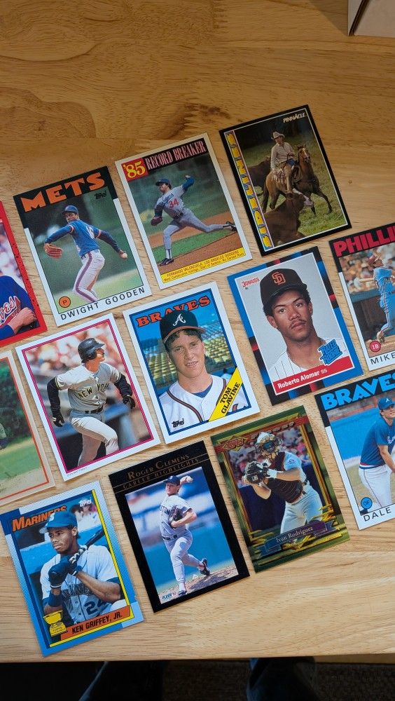 A full box of mid to late 80s and early 90s baseball cards. Only HOFs or stars ..no commons at all. Lots of rookies. Griffey, Nolan, Clemens, Jr, Bonds, etc. Probably 300+ cards. Asking less than $1/per which seems very reasonable as some of these are definitely selling for more. Almost all are mint+. Porch pickup in Burien.