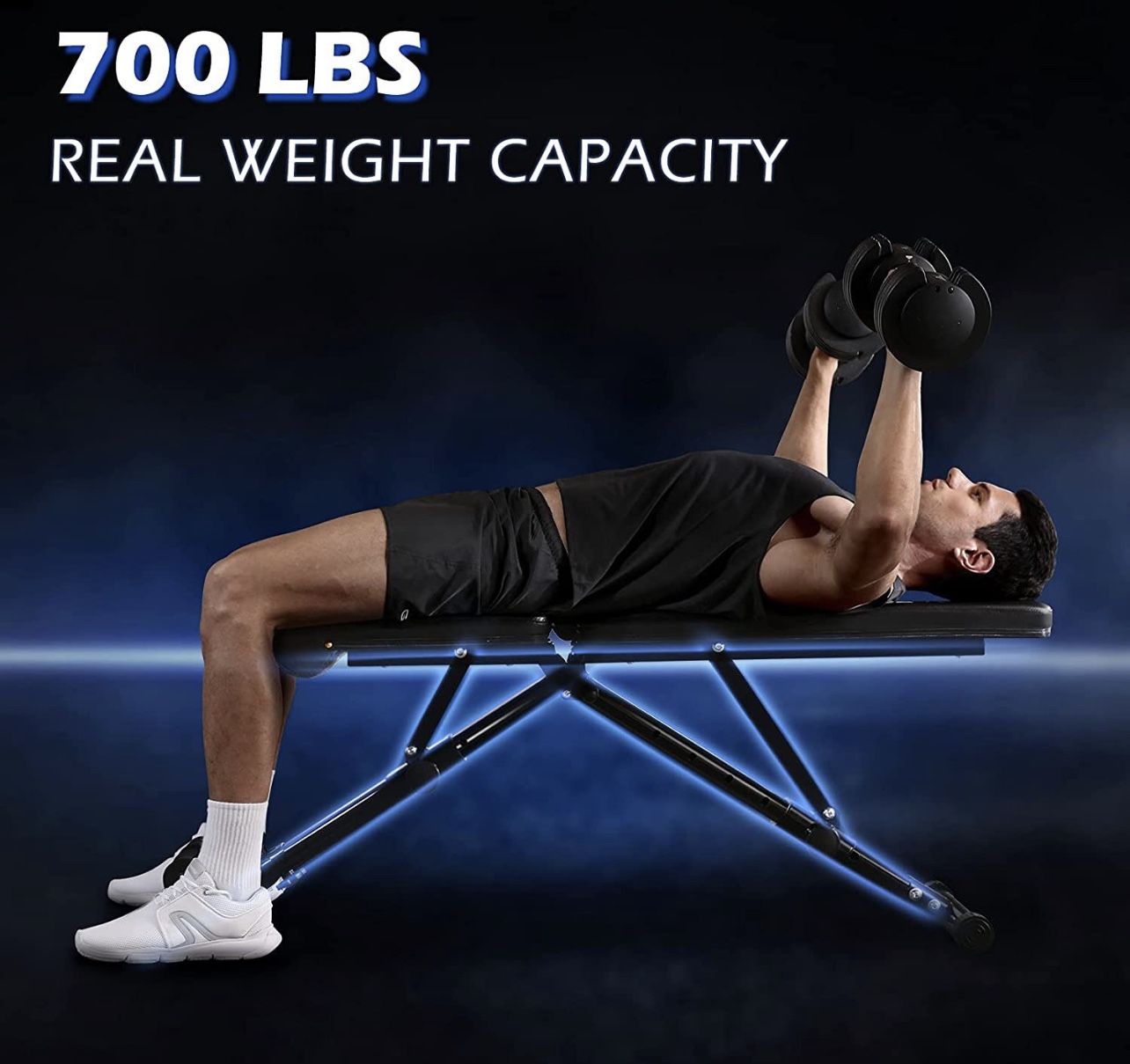 NEW IN BOX ... All sales are final,NO RETURN ,Please NO offers ... FIRM PRICE! LOW BALLERS will be ignored☺ SERIOUS BUYERS ONLY PLEASE ! FLYBIRD Adjustable Weight Bench & 700LBS Real Weight Capacity & Full Body Workout & 7+3+2 Positions Incline Perfect Home Workout Bench AMERICA’S BEST UTILITY ADJUSTABLE BENCH FLYBIRD,which is design and produce fitness equipment for 20 years. Especially in WEIGHT BENCH, the bench was designed with advice of professional coach. You need a durable bench,Not a one month bench HIGH QUALITY BENCH: Made of Commercial Thickness Steel, past thousands of weight test to ensure safety for workout every-time, Perfect size for most people and 100% reliable data. Not the lied bench. 2" SOFT FOAM PADDING : 10.6" Upgraded backrest and seat made of leather and filled with soft foam padding to 2" ! NO CRACKING! Allow you do any exercise with a very comfortable feeling. (All the measurement is actual result) EASY-FOLDING COMPACT DESIGN: An automatic bolt allows set up or fold up IN 30 seconds. 2021 High Quality Bench - Made of commercial thickness steel, past thousands of weight test to ensure safety for workout every time, Not the mendacious bench. Weight capacity is 700 pounds - Designed a unique frame with triangular structure and made of heavy duty commercial quality steel which is very sturdy and durable All this is important in your workout Fast adjustment with automatic lock - Designed with 7 back positions and 3 seat positions for full body workout You just pull the fast bolt, adjust the place which fit yourself and automatic lock Good 2 inch soft foam padding - 10.6 inch upgraded backrest and seat made of pu leather and filled with soft foam padding Allow you do any exercise with a very comfortable feeling Save 80 percent space - FLYBIRD foldable bench, easy to carry and no assembly needed, folded size 30 inch long 16 inch wide 9 inch high You can put it in the corner or under the bed when you finish workout Full Body Workout 7 baskrest & 3 seat & 2 foot pad positions maximize your full body workout, with Safety FAST BOLT ! Fit for up to 10 different exercises. Save 80% Space EASY TO CARRY & NO ASSEMBLY NEEDED, 30S to set up! Folded size: 30" L x 16" W x 9" H. You can put it on the corner or under the bed Comfortable Pad 10.6" Upgraded backrest and seat made of leather and filled with soft foam padding to 2" ! NO CRACKING! Allow you do any exercise with a very comfortable feeling. Well-made bench with Automatic Bolt Made of heavy-duty commercial quality steel, can bear 700LBS Fast adjust the place which fit yourself and automatic lock. Safety!