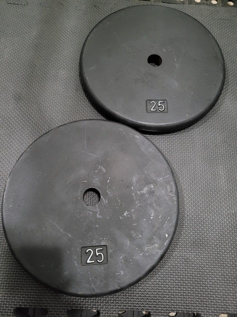 Two 25 pound standard 1 inch diameter hole weights
