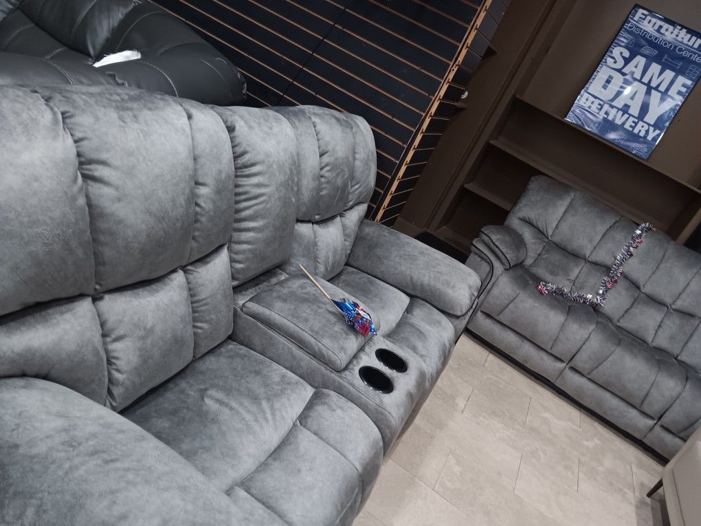 *Fourth Of July Now*---Barcelona Sophisticated Gray Fabric Reclining 3 Piece Sets---Delivery And Financing💪