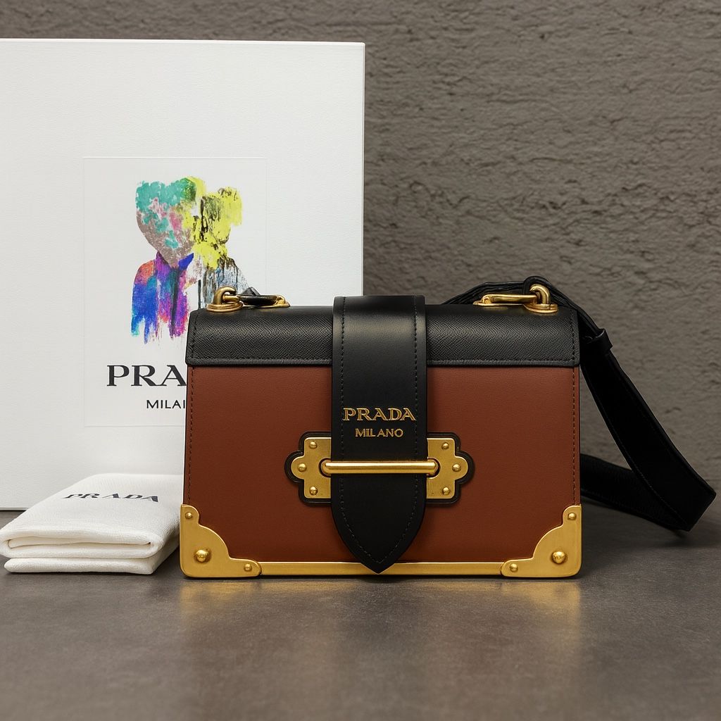 PRADA Cahier Leather Crossbody Bag – Rare Two-Tone Brownish Maroon & Black with Gold Hardware