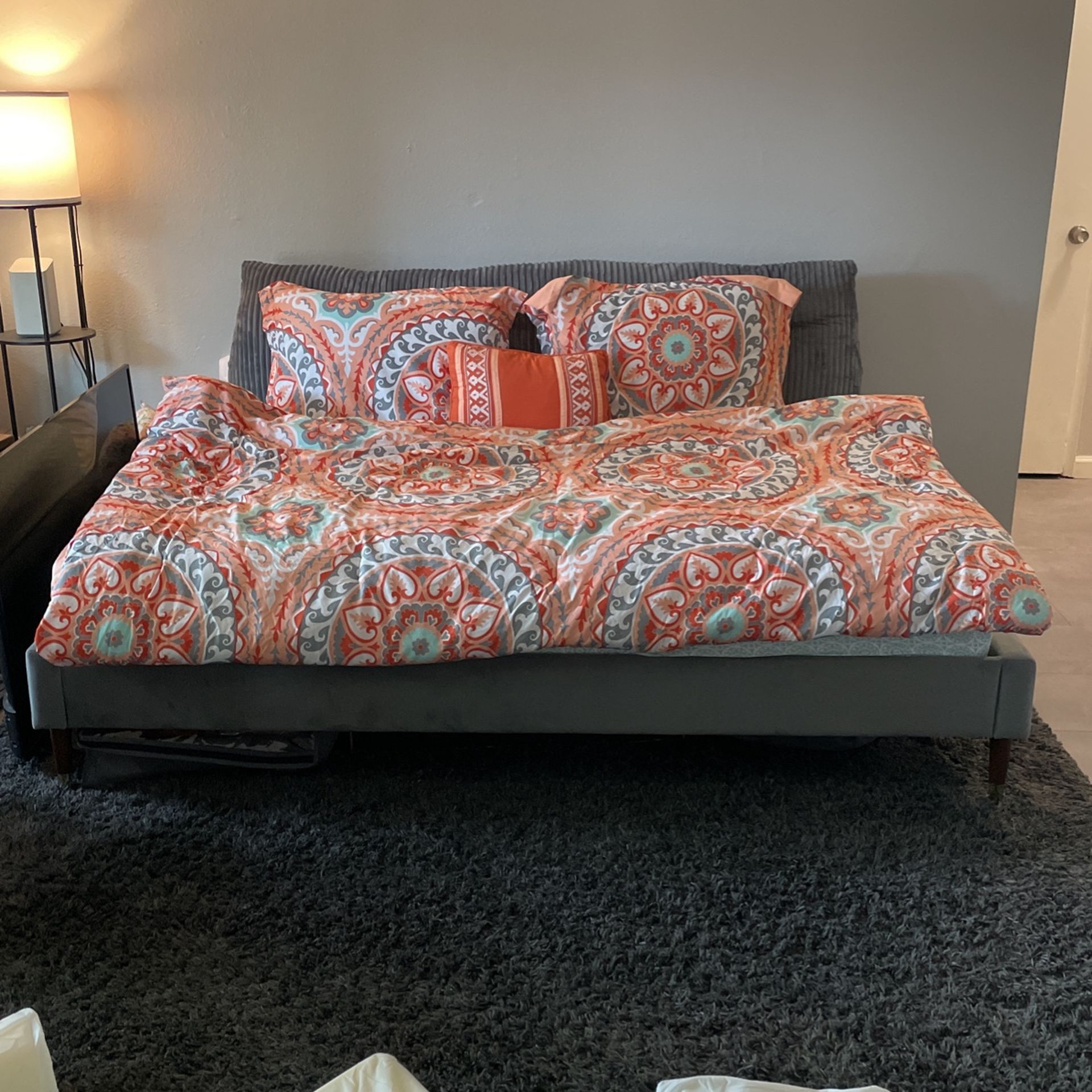 Baxton Studio Volden Frame Full Minor damage on one of the slats It’s dissembled now and needs picked up