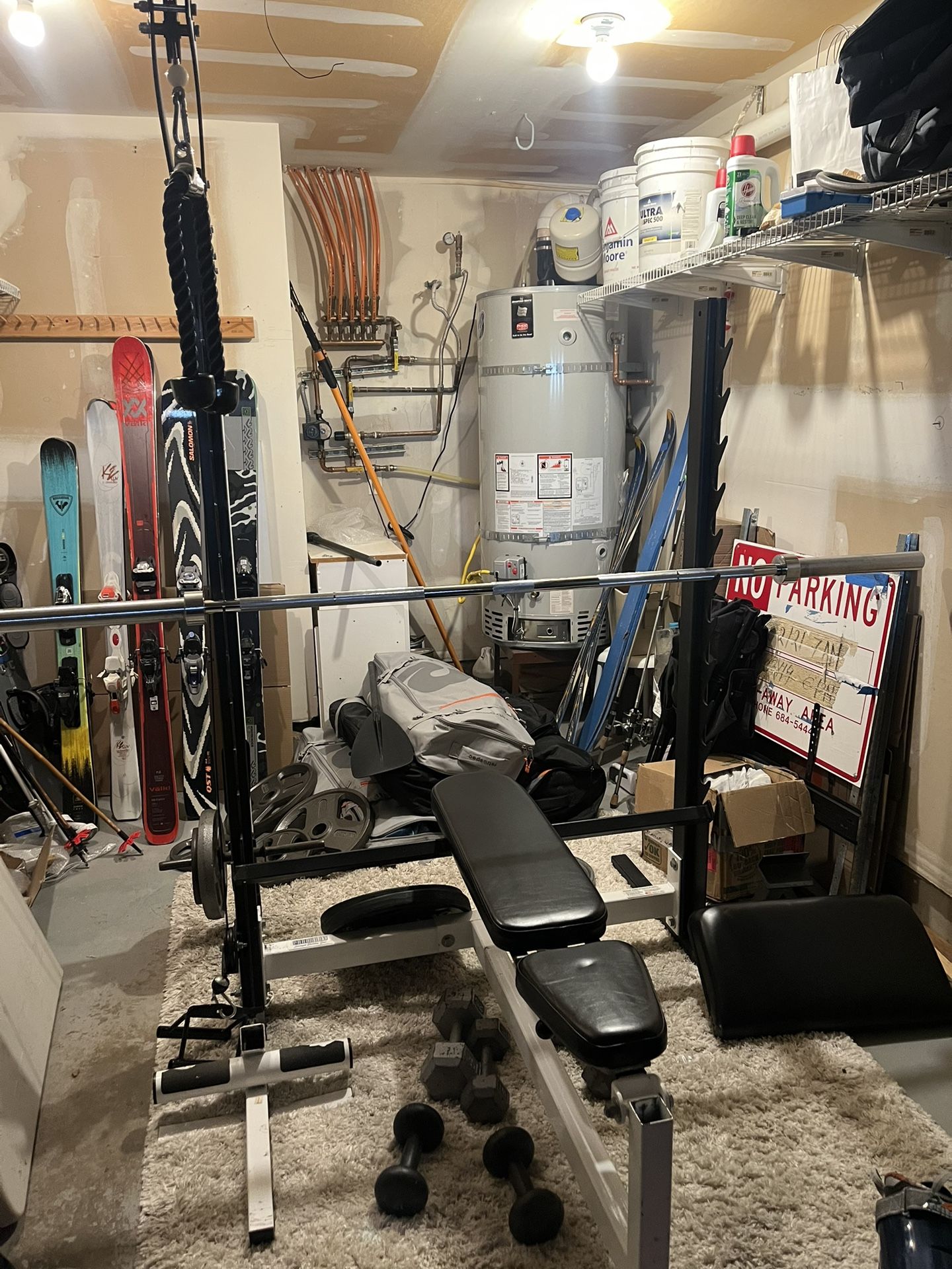 Weights and bench with attachments