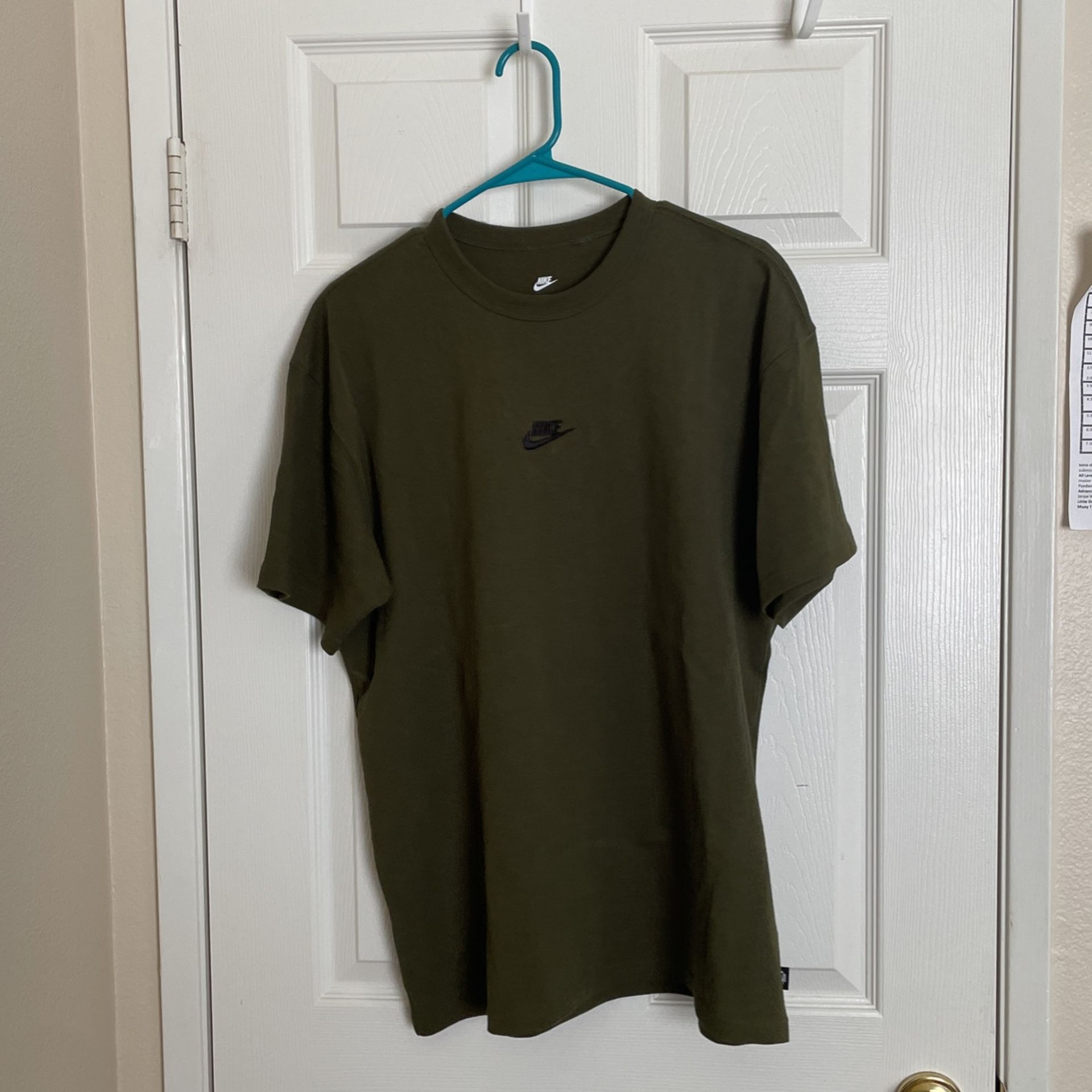 Lightly worn Nike T-shirt in green. Black swoosh logo in the middle. Size L