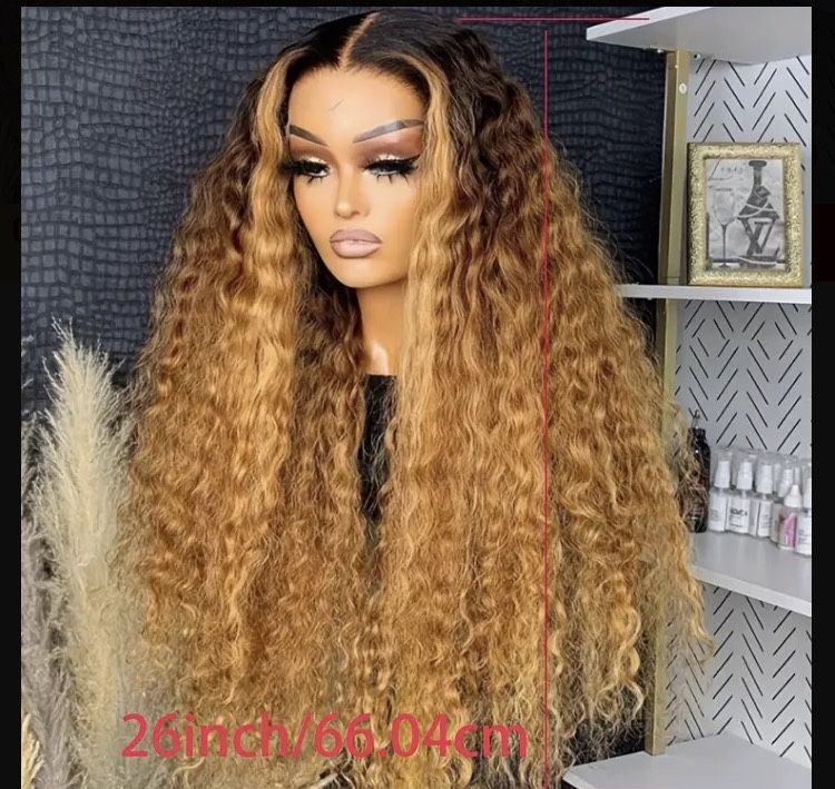 Ombre Golden Ultra Soft 26-inch 180 Density Long Curly Synthetic Hair Deep 13x4x1 Lace Front Wig High Temperature Fiber Glueless Pre-Plucked Heat Resi