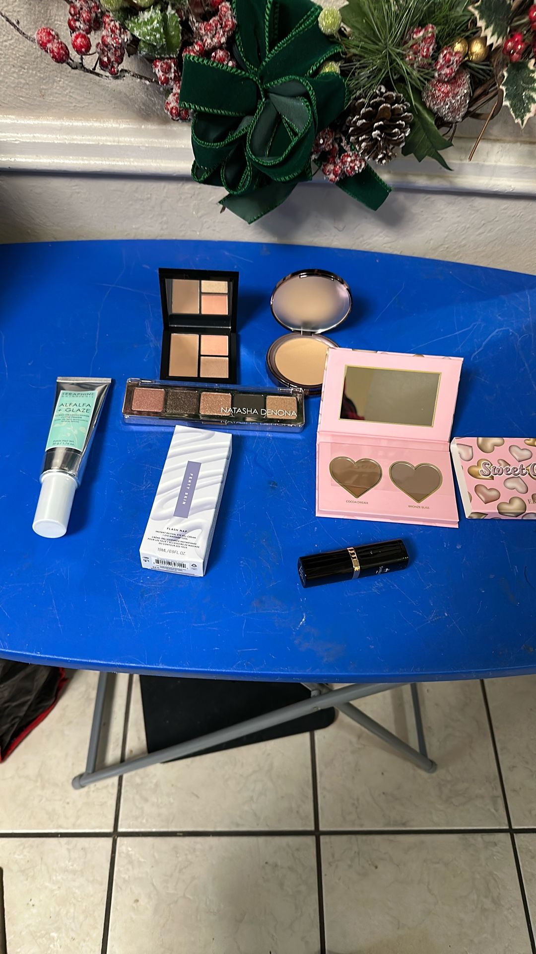 Items are brand new, never used, There is a long wearing glow primer There is a instant revival eye gel cream also includes eye massage tool There are two eyeshadows, there is also pressed powder and bronze duo