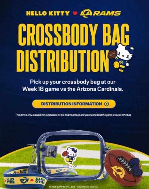 For sale brand new limited edition LA Rams Hello Kitty Cross Body bag