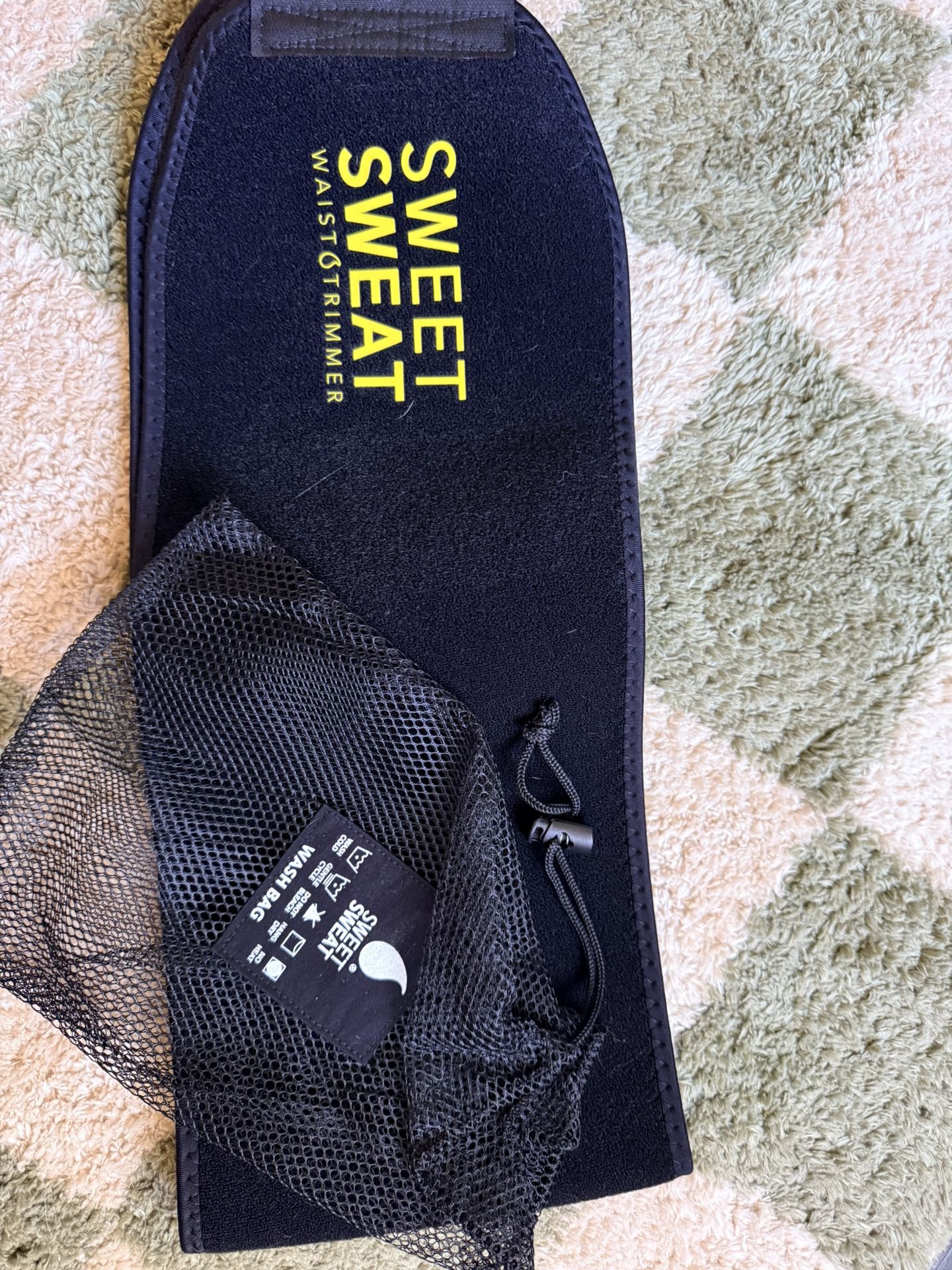Sweet Sweat waist trimmer, used once and disinfected. Comes with original mesh wash bag. Adjustable, comfortable, and great for workouts or sauna sessions.