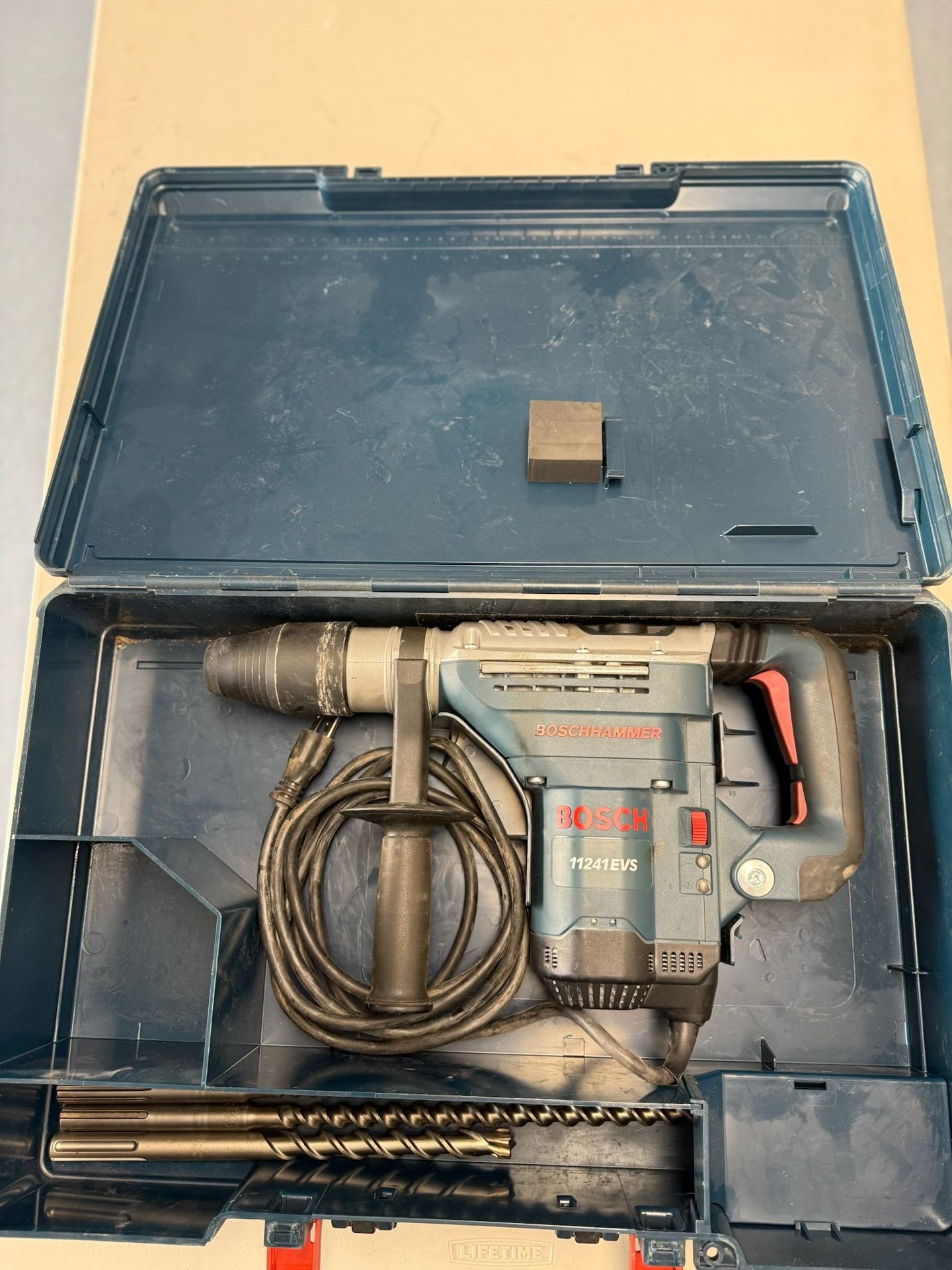 Bosch 11241EVS Rotary Hammer Drill – w/ Case & Bits Selling a Bosch 11241EVS Rotary Hammer Drill, heavy-duty SDS-max tool for drilling and chiseling concrete, masonry, and stone. ✅ Boschhammer 11241EVS model ✅ Variable speed for control ✅ Includes hard carrying case ✅ Comes with side handle & extra bits ✅ Professional-grade tool – runs strong 📍 Local pickup only Perfect for contractors, masons, or anyone needing a serious rotary hammer for heavy-duty work.
