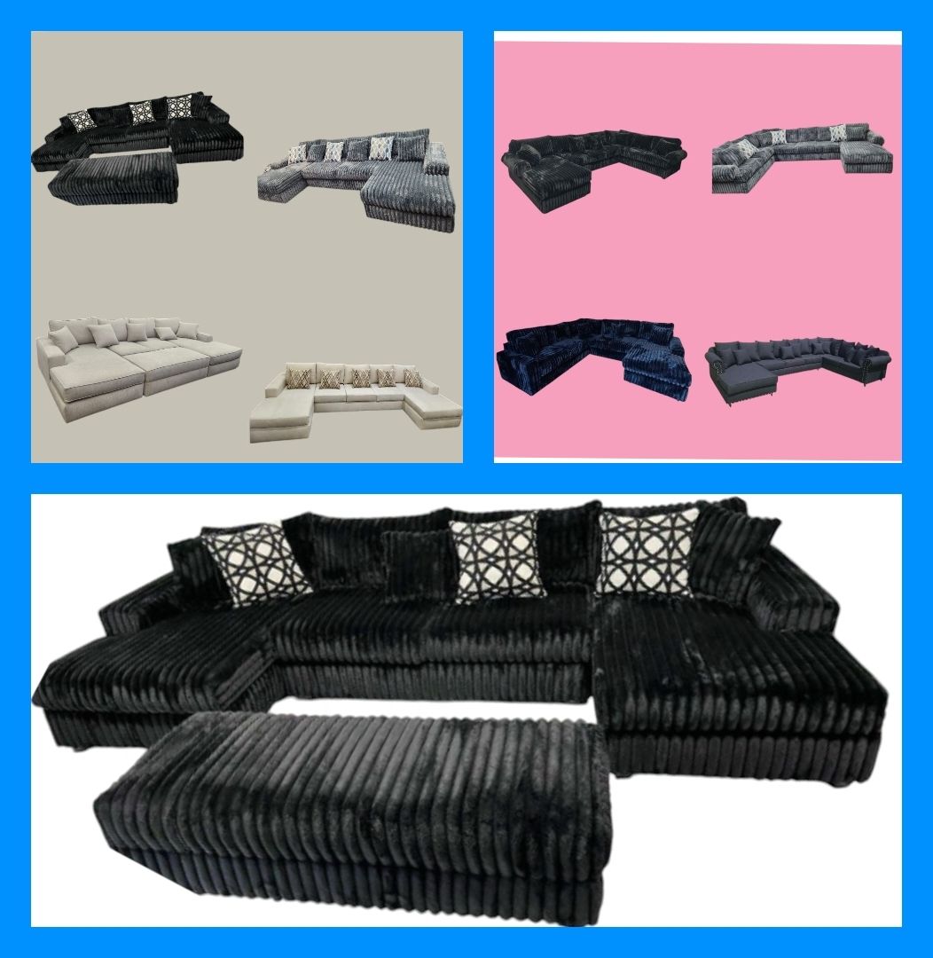 BRAND NEW 6x13x6ft And 11x11ft SECTIONAL SOFA CHAISE, CORDOROY BLACK FABRIC. CUSTOM MADE AVAILABLE