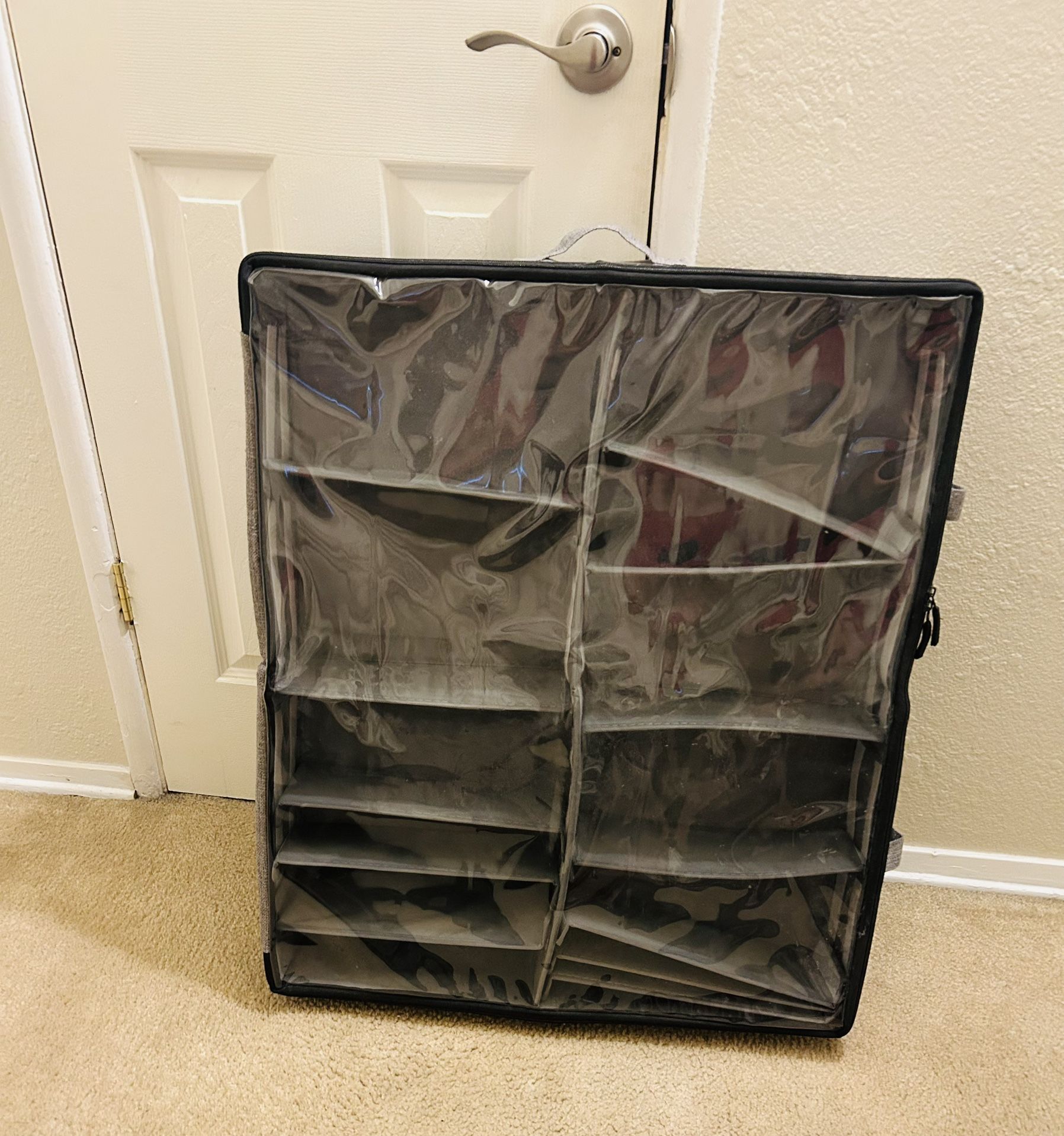 Grey color Under bed shoe organizer with handles. Holds up to 30 pairs of shoes good condition. Must sell