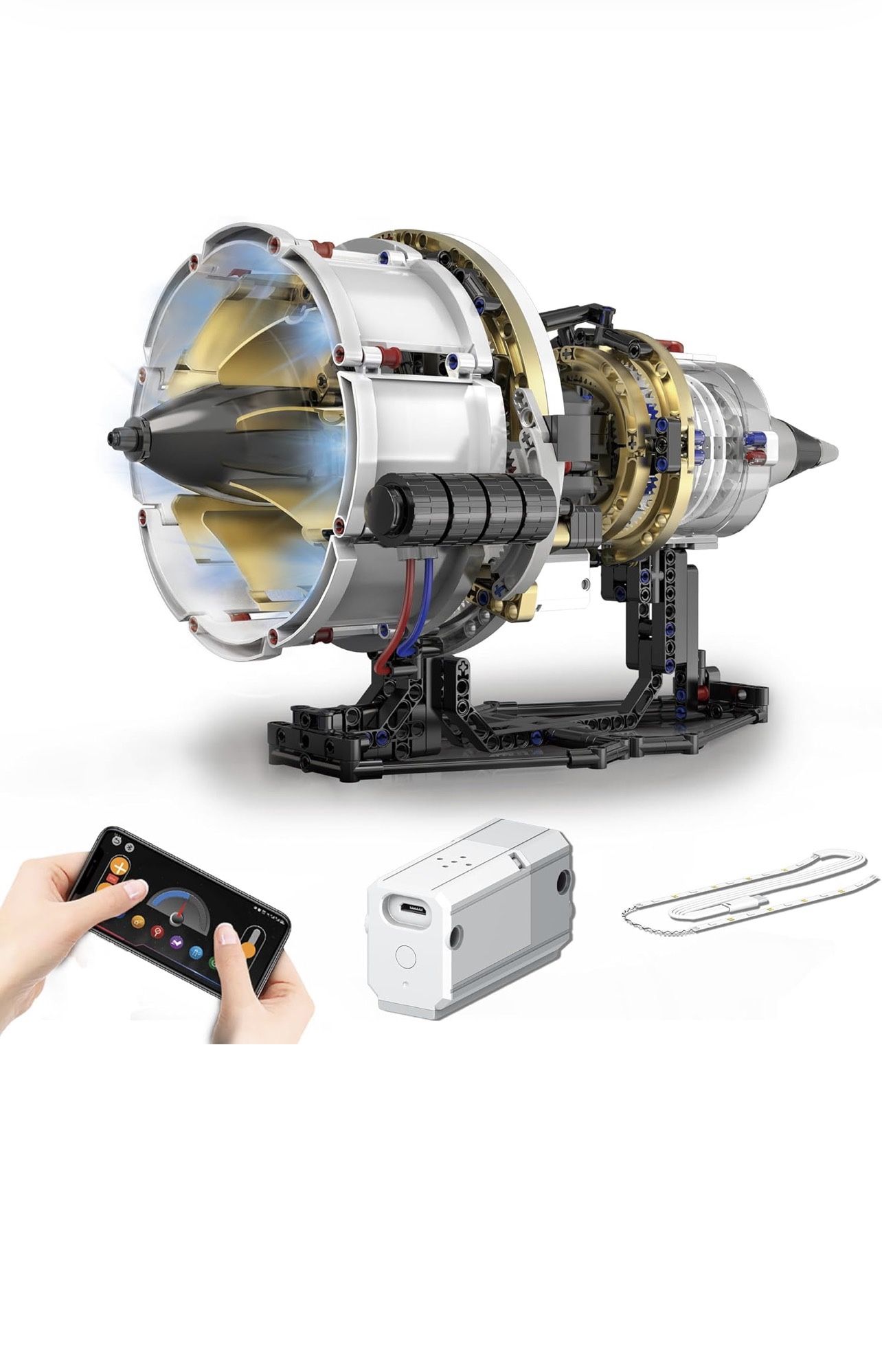Kit de modelo de motor a reacción que funciona, juegos de bloques de construcción controlados por aplicación con motor, kit de construcción de motor