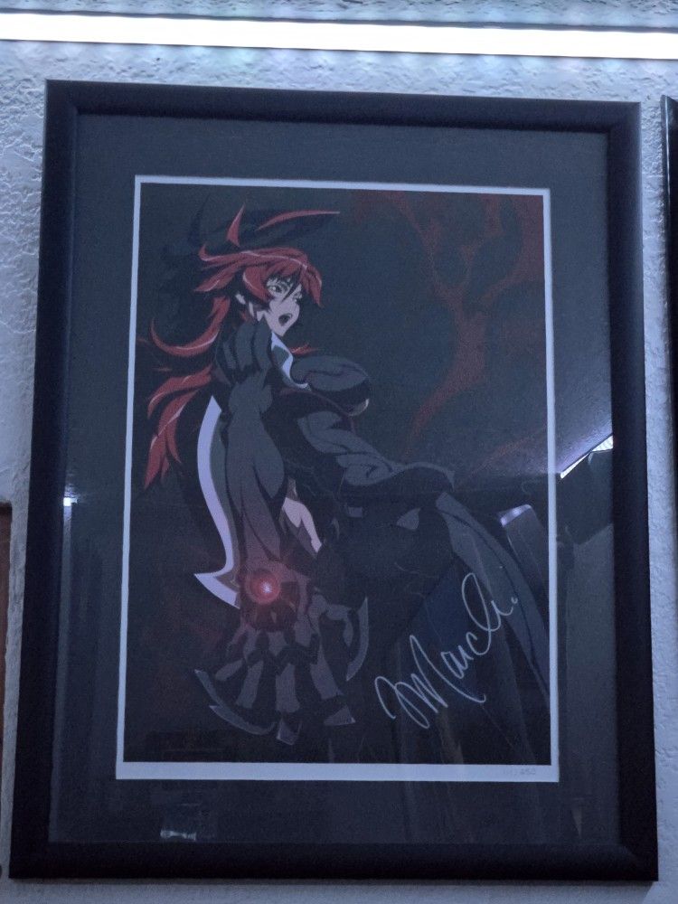 Poster printed on glossy paper and custom framed to fit poster featuring the iconic Witchblade with autograph signature from Jamie Marchi, the voice artist behind Witchblade. This is definitely a unique find for anyone who loves the Witchblade universe and comic book memorabilia. Only displayed on wall.