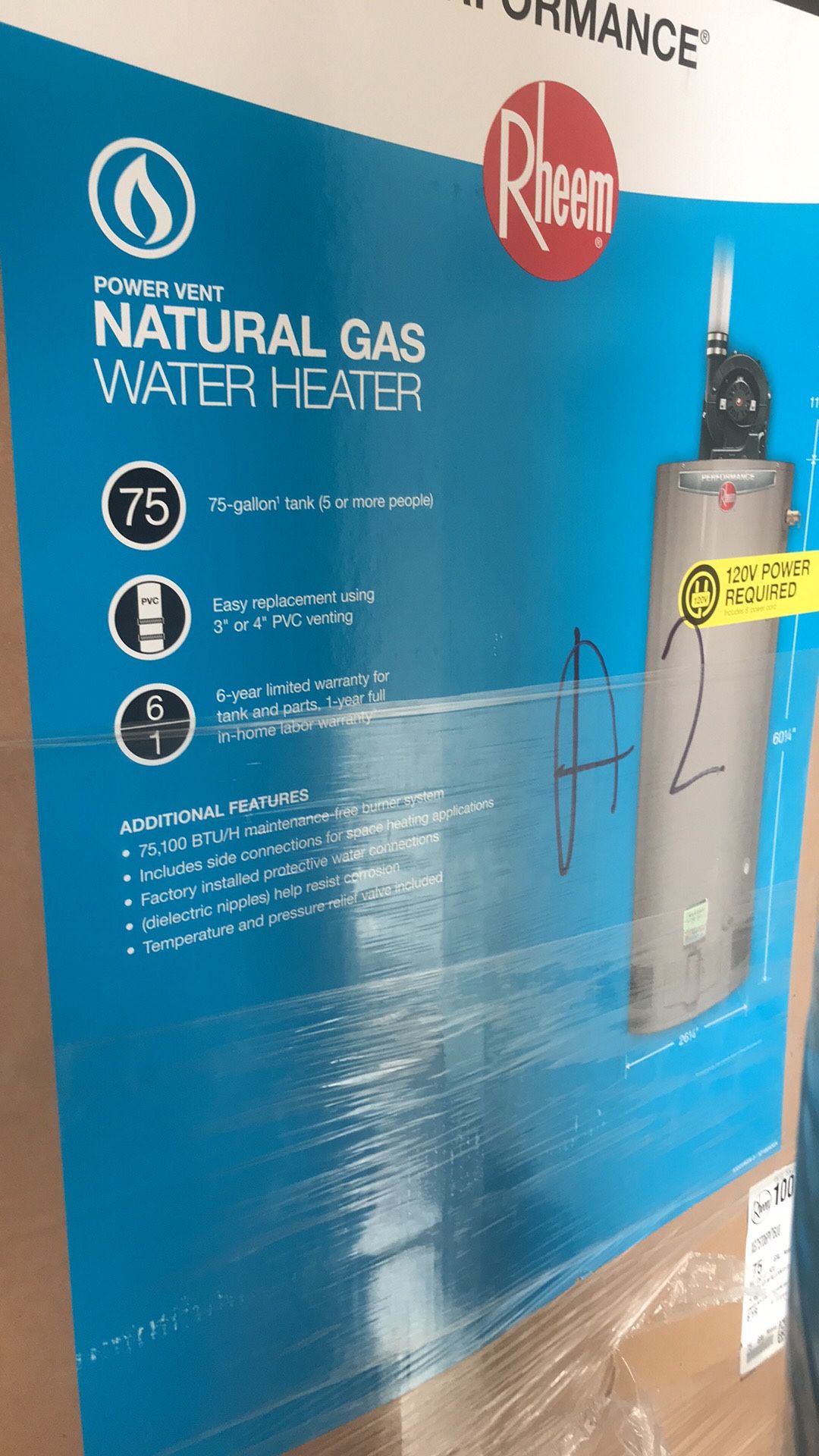 Rheem Performance 75 Gal. Tall 6 Year 76,000 BTU Natural Gas Power Vent Tank Water Heater