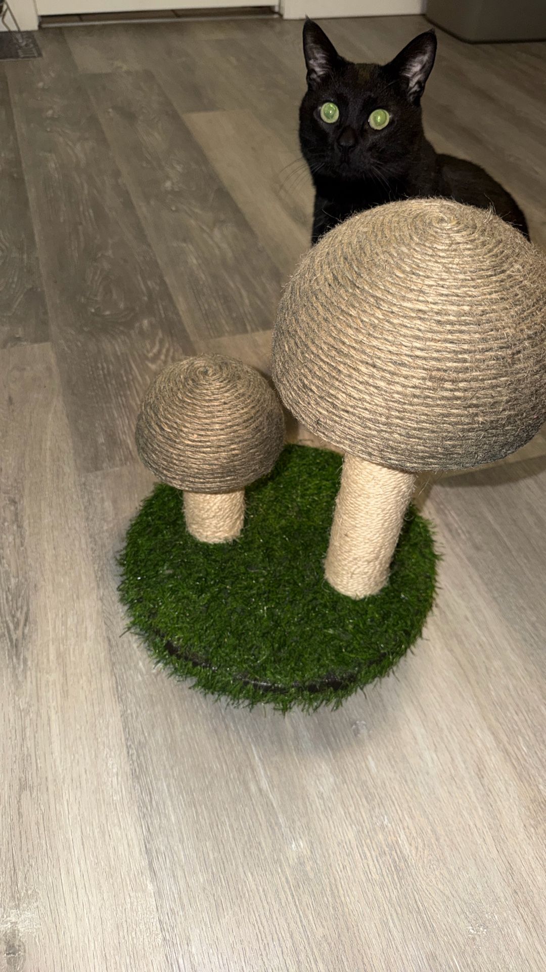Mushroom cat scratcher My spoiled black cat has too many toys and has never used