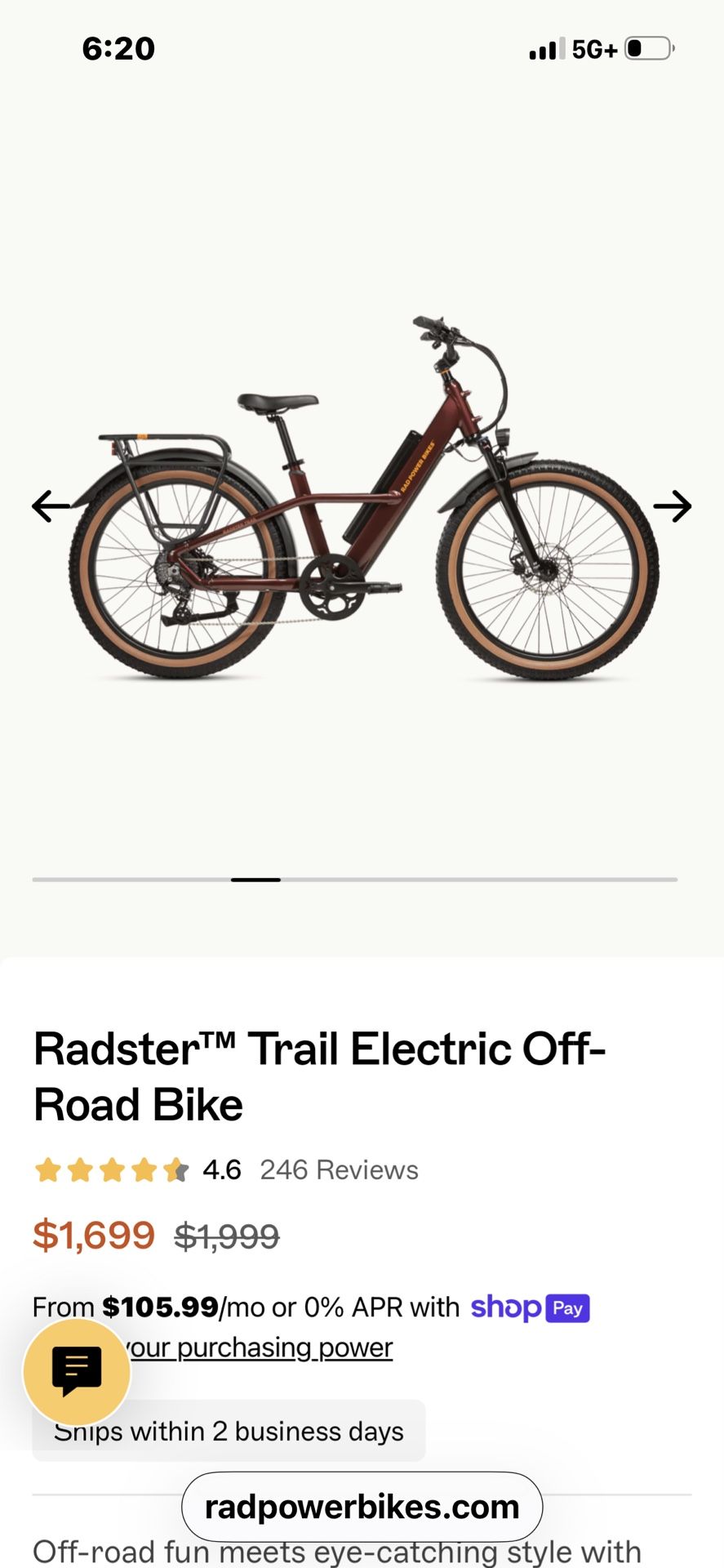 Selling brand new Radster Trail e-bike. It’s a size large and the Copper Red color. I bought two but can only see keeping one. Instead of returning I’m thinking that posting on Offer Up can be a good deal for me and whomever buys it.