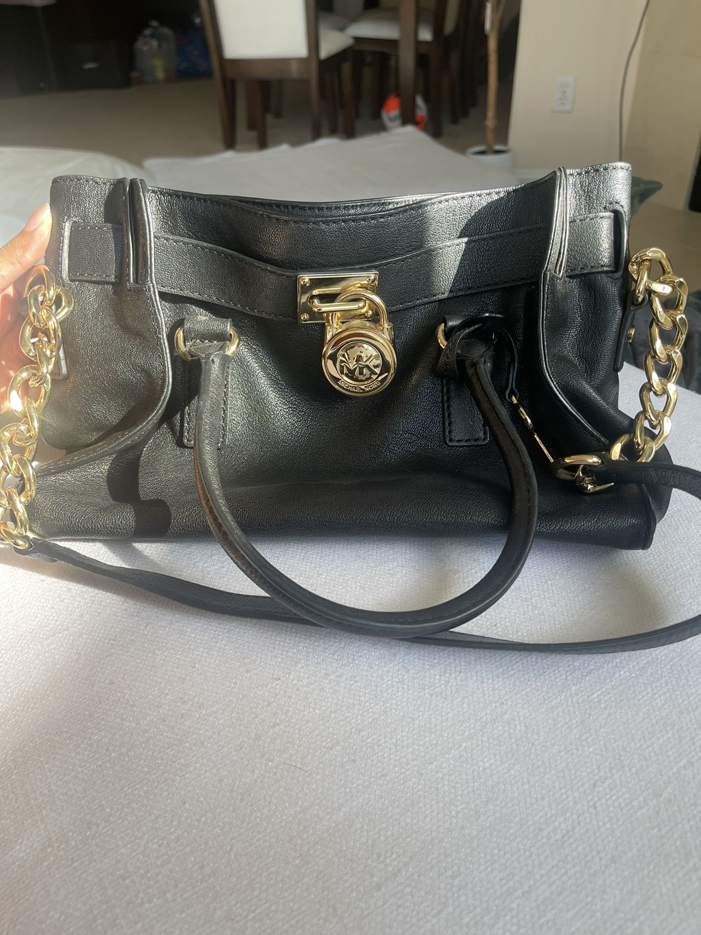 Black and gold Michael Kors purse. Used, with some scratches in hardware but overall good condition