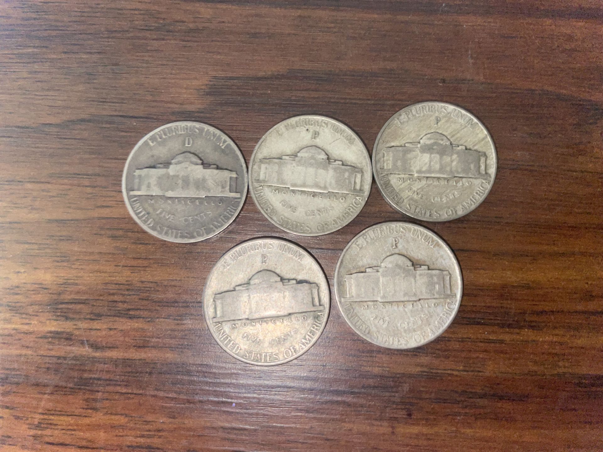 Lot of 5 silver war nickels, mint marks P &D. $17