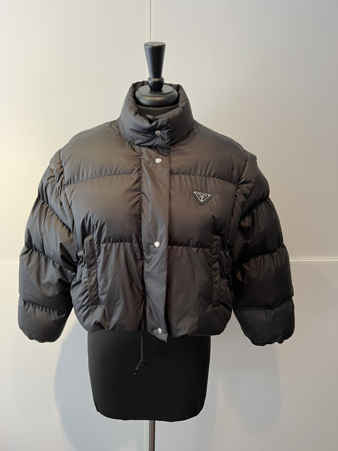 Prada cropped puffer jacket with detachable-sleeve. New never worn Size M No receipt Message me for more info