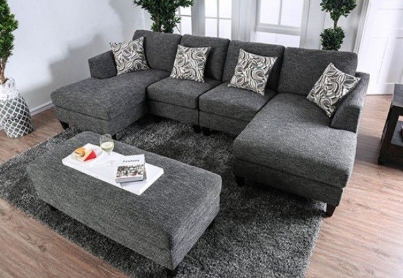 βπ« We do not have a showroom. We deliver directly from the manufacturer to your home π . π Delivery is only $40 π οΈ Assembly is an extra charge. Price on assembly depends on which item you order! π΅ We accept cash on delivery Mattresses are sold separately π₯We are voted #1 on offer up, please also view other options on our page!!! Beds, bedroom sets, sectional, sofas, daybed, futon, vanity, dining set, chairs, recliner, Loveseat, dresser, queen bed, king bed, desk, kitchen cabinets, shaker cabinet, grey sectional, grey sofa CM6363-SET We won't blame you if you spend your days off lounging around on this sectional sofa. Its plush, it's stylish, and its customizable to however you want to create your ultimate relaxation zone. The cool gray pattern is broken up by the accompanying patterned pillows giving the set instant decoration. Transitional Gray Chenille, Solid Wood, Others High-Density Foam Cushions Fitted Back Pillows Pillows Included Tappered Feet Ottoman Included Sectional. 122"L X 61"W X 35 3/4"H Ottoman. 52"L X 24"W X 20 1/2"H