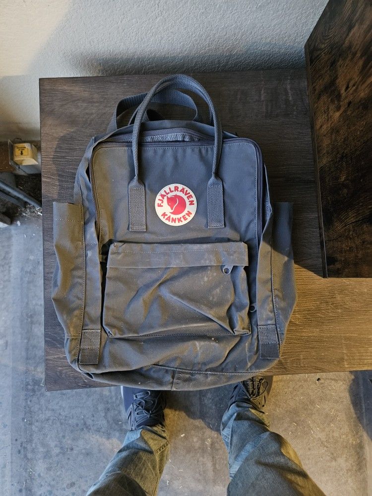 Fjallaraven Backpack (gray). New, not stained, just dusty.