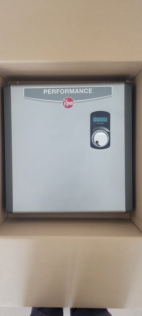 24kw 5.27 GPM 240-Volt Self-Modulating Electric Tankless Water Heater - Used for 2 years. Fully functional and in great condition. Compatible with 3/4 in. water connectors for flex hose installation and no venting or T or P valve required for easy installation.