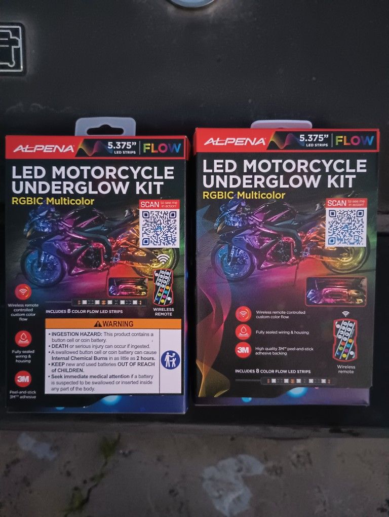 Multicolor lighting with custom color flow which is wireless remote controlled. Includes 8 color flow LED strips. Peel-and-stick 3M™ adhesive for installation. Could also be installed in the engine bays of vehicles.