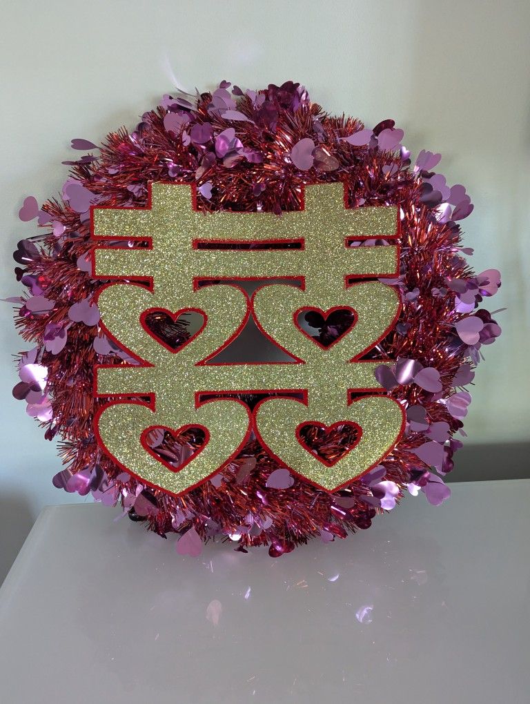 Double Happiness Door Wreath with Hearts Used once. Good condition. Double happiness sign is glued on and can be removed. See other listings for additional tea ceremony decor.