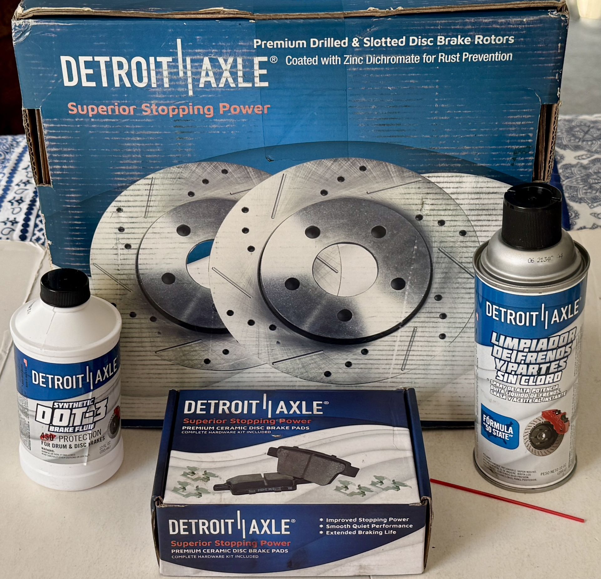 Detroit Axle - Brake Kit for 2000-2004 Toyota Avalon Rear Drilled and Slotted Brake Rotors / Ceramic Brakes Pads Aftermarket Replacement: 11.34" inch Rear Rotors - Brand New! - Brake Rotors Brake Pads Replacement for 2000 2001 2002 2003 2004 Toyota Avalon - Brakes Kit Includes: 2x Rear Drilled Slotted Disc Brake Rotors + 2x Rear Ceramic Brake Pads + Brake Cleaner and Fluid - Brake Rotors are built to exceed OEM Specification and have the proper fit and finish required for superior stopping power. - Undergo impact, wear, and fatigue testing to help ensure quality and durability Kit Includes: - 2x Rear Drilled & Slotted Disc Brake Rotors (11.34 inch (288mm) Rear Rotor Size): S-31268 - 2x Rear Ceramic Brake Pads (Hardware Included): P-828 - 1x 10oz Brake Cleaner Spray - 1x 12oz Brake Fluid Bottle I bought these as part of a front and rear brake kit for my 2000 Toyota Avalon, but I only ended up installing the front rotors and pads. I have since sold the vehicle, so the rear brakes part of the kit and fluids are still in brand new unused condition.
