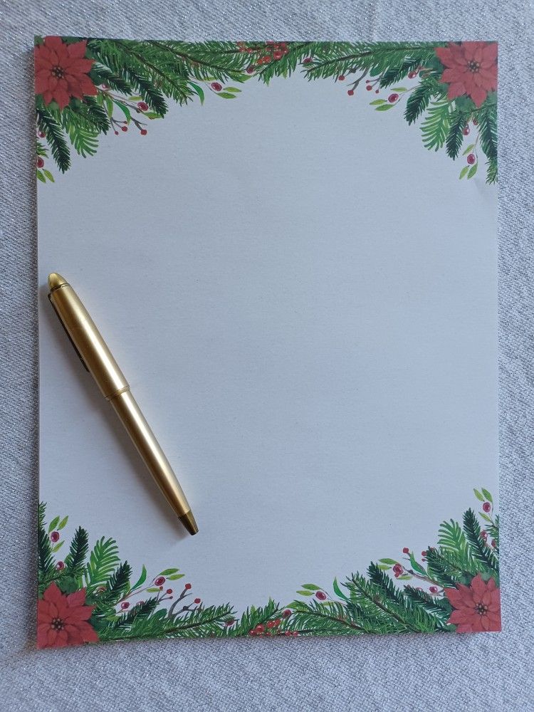 20 Sheets Of Holiday Writing Paper With Gold Pen