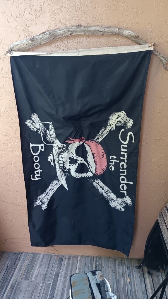 Very cool pirate flag with a real driftwood attached to it. It can be hung from a wall. Great for a porch , patio , man cave , or any fun setting. Great conversation piece. Near Dadeland Mall area.