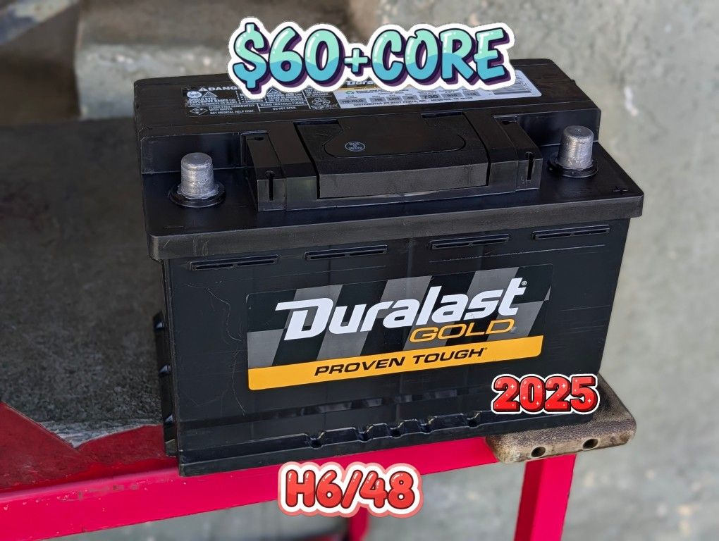 Car Battery Group Size 48/H6 2025 In excellent condition. Fully Tested. $60 with core exchange (old battery) or $70 without. You're welcome to bring your own tester, but I'll also provide one. Payment accepted via Cash or Zelle. Located in Boyle Heights.